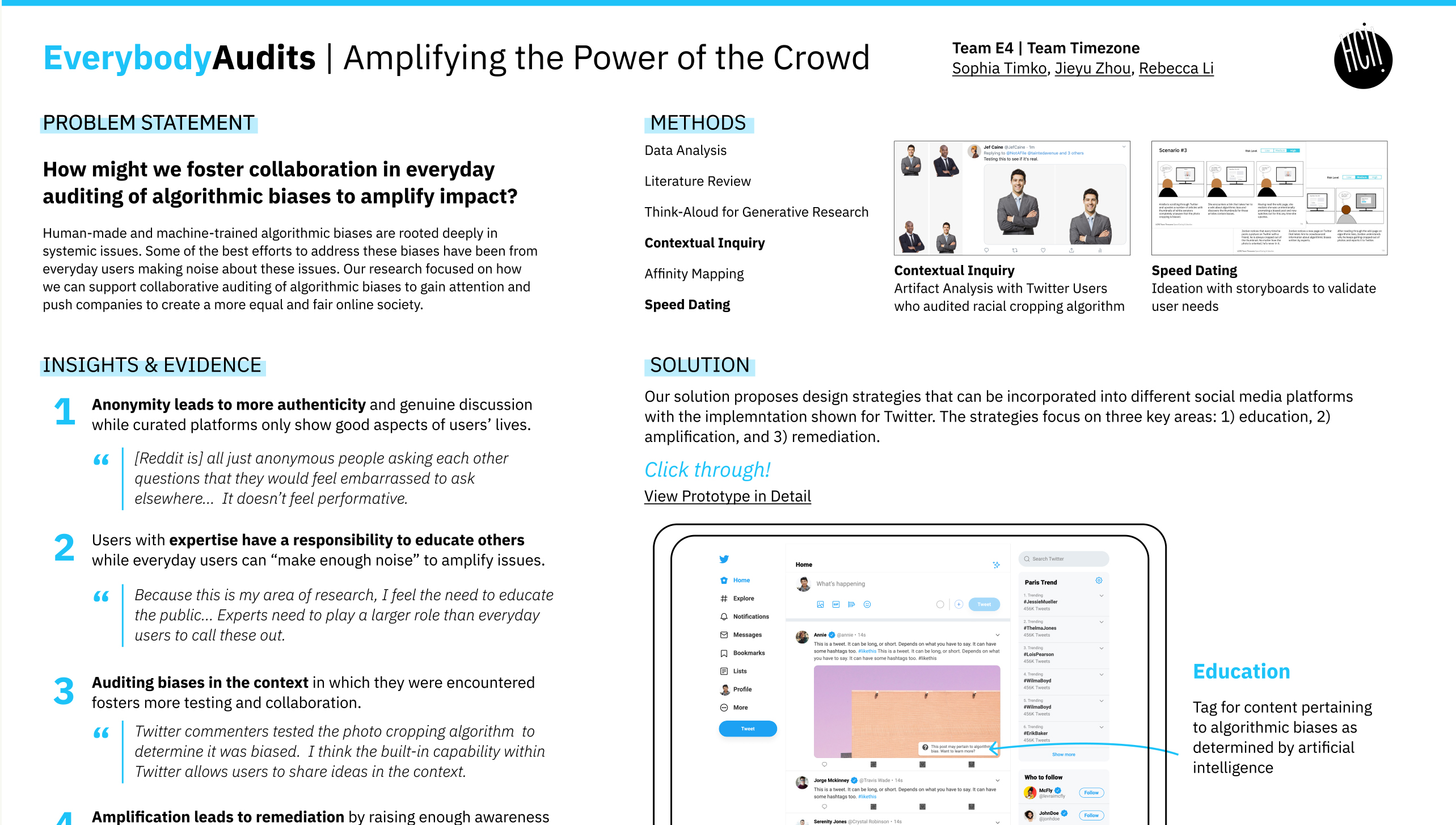 Human-made and machine-trained algorithmic biases are rooted deeply in systemic issues. Some of the best efforts to address these biases have been from everyday users making noise about these issues. Our research focused on how we can support collaborative auditing of algorithmic biases to gain attention and push companies to create a more equal and fair online society.