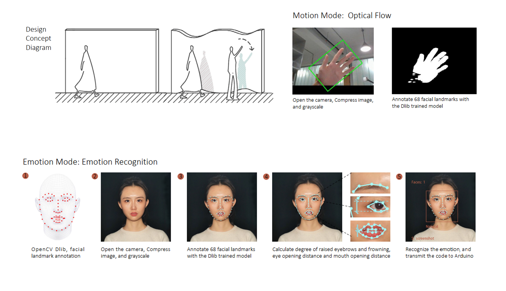 Making authentic models and creating space on their own. In my project, the smart wall can change its color according to users’ facial expressions and twist based on users’ body movement. In this way, people less-informed of design knowledge engage in design process more actively.